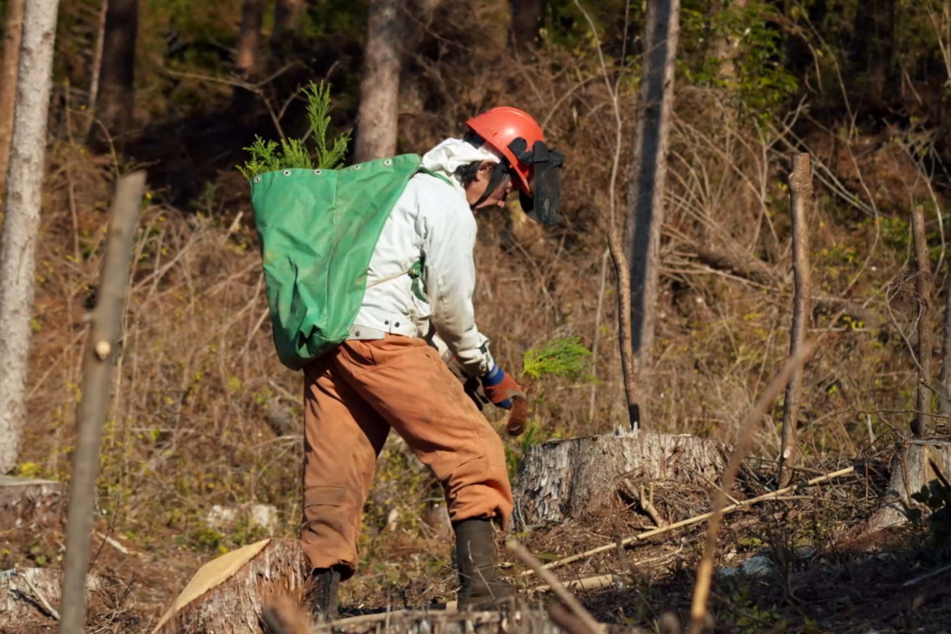 山師といえばチェーンソーで木を伐採するというイメージが強いと思いますが、この造林作業は、持続可能な森林にするために伐採した後の場所を再生するという、とてもやりがいのある仕事です。自然の中での仕事のため特に夏や冬は体力を消耗しますが、自分の体力に合わせて自由に休憩をとりながらおこなっています。体力に自信のない方でもこの仕事を通じて体力がついていくので心配いりません。また、長期間同じ場所で作業するのではなく、現場を移動していくため、休憩時間はほぼ毎日違う景色を見ながらリラックスできます。この大自然の絶景を毎日感じることで自分の人生も豊かになると思います。